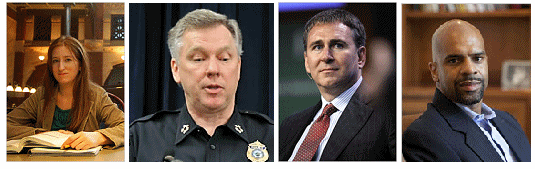 [1. Lost her identity, sorry; 2. Sgt. James Crowley who arrested Professor Gates in Cambridge; 3. Kenneth C. Griffin, 40 year old founder of the Citadel Investment Group, the $20 billion hedge fund; 4. Al Vivian, left, is a diversity consultant in Atlanta. images 1, 3 and 4 from The New York Times, image 2 from the Christian Science Monitor.]